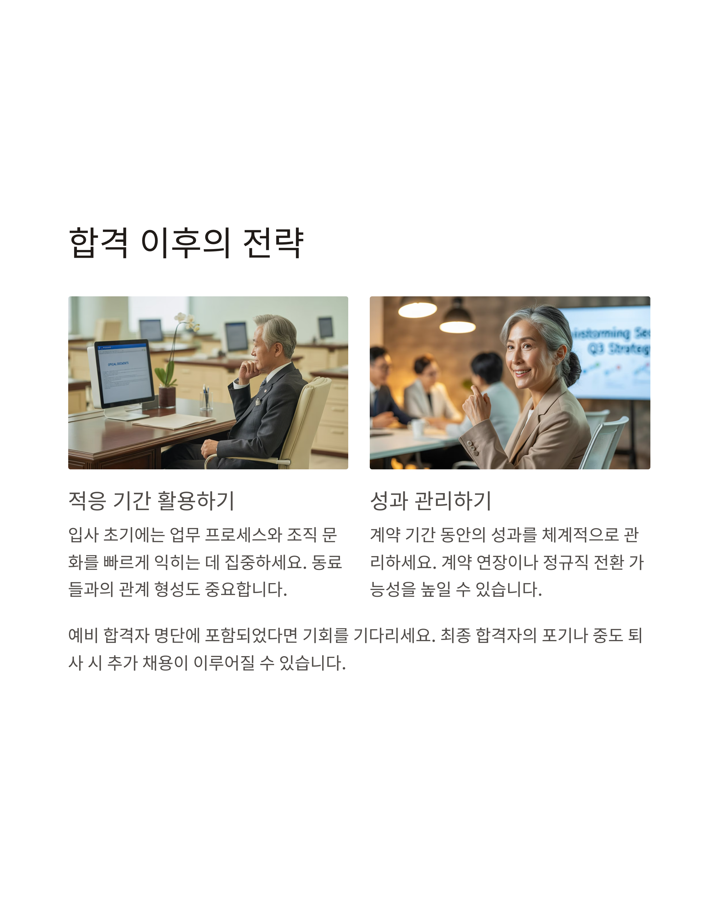 이 외에도 예비 합격자 명단에 이름을 올려두는 것도 중요합니다.