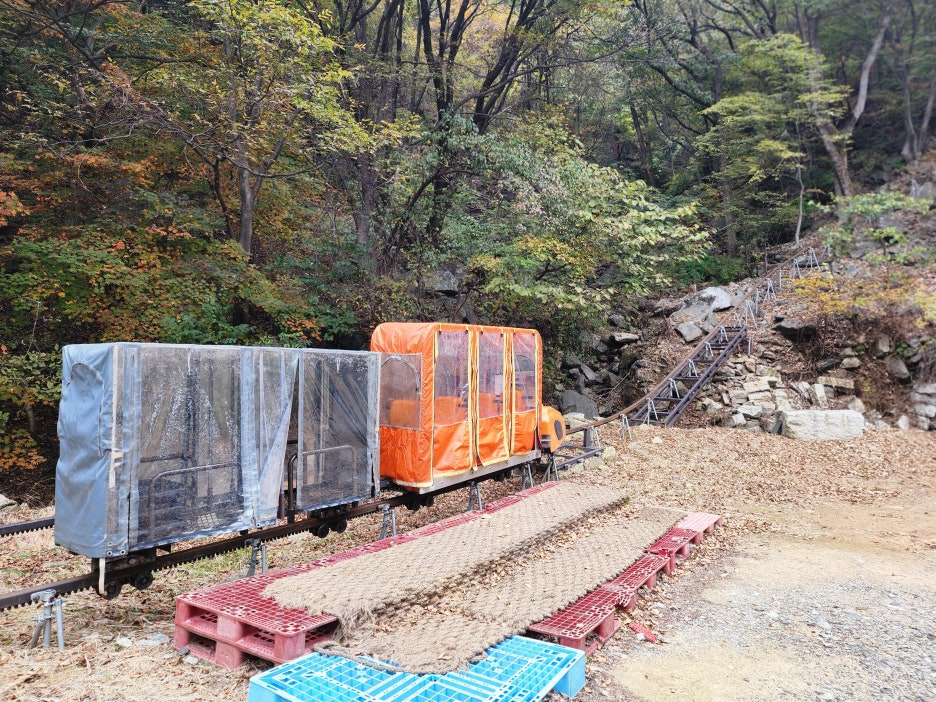 흔히 생각하는 길보다는 훨씬 가파른 산길이라 왜 모노레일이 놓여 있는지 이해가 갔습니다.