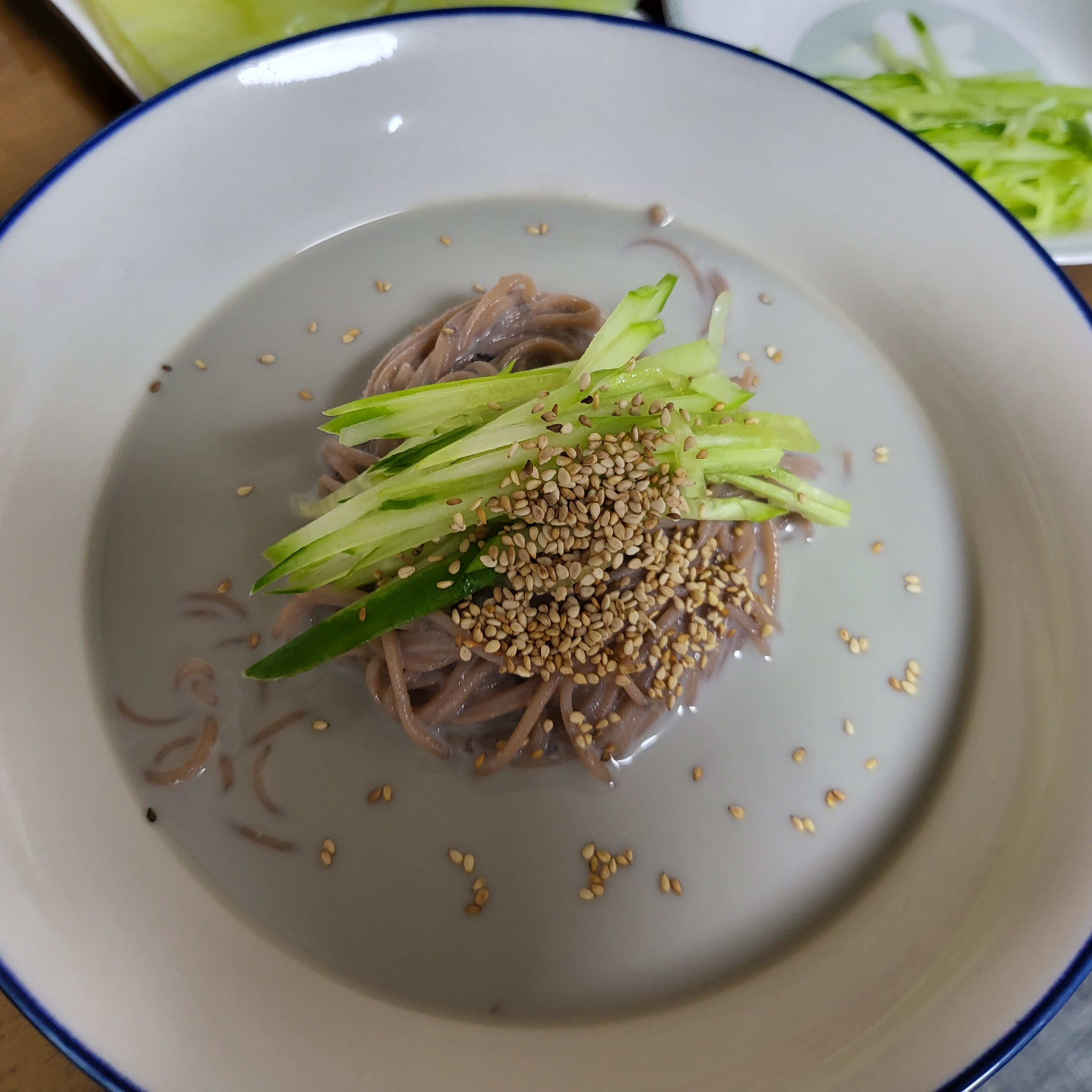 스님이 준비해 주신 게 해죽순보리국수로 만든 콩국수에 반찬으로는 나온 것 중엔 초석잠 피클까지 있어서 반가웠습니다.