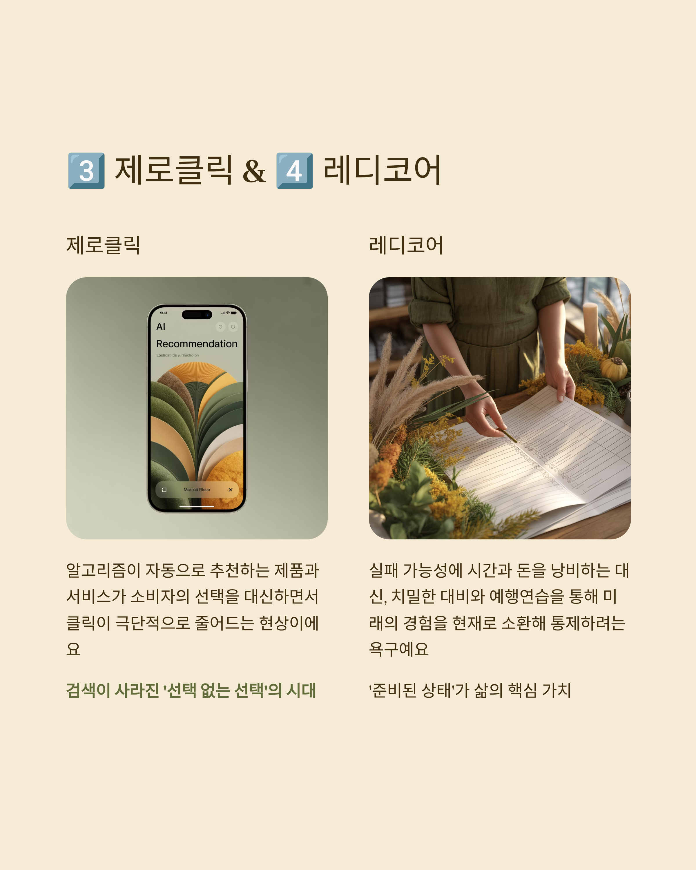 3. 제로클릭(Zero-click) 알고리즘이 자동으로 추천하는 제품과 서비스가 소비자의 선택을 대신하면서 클릭이 극단적으로 줄어드는 현상입니다. 검색이 사라진 '선택 없는 선택'의 시대가 도래했습니다.