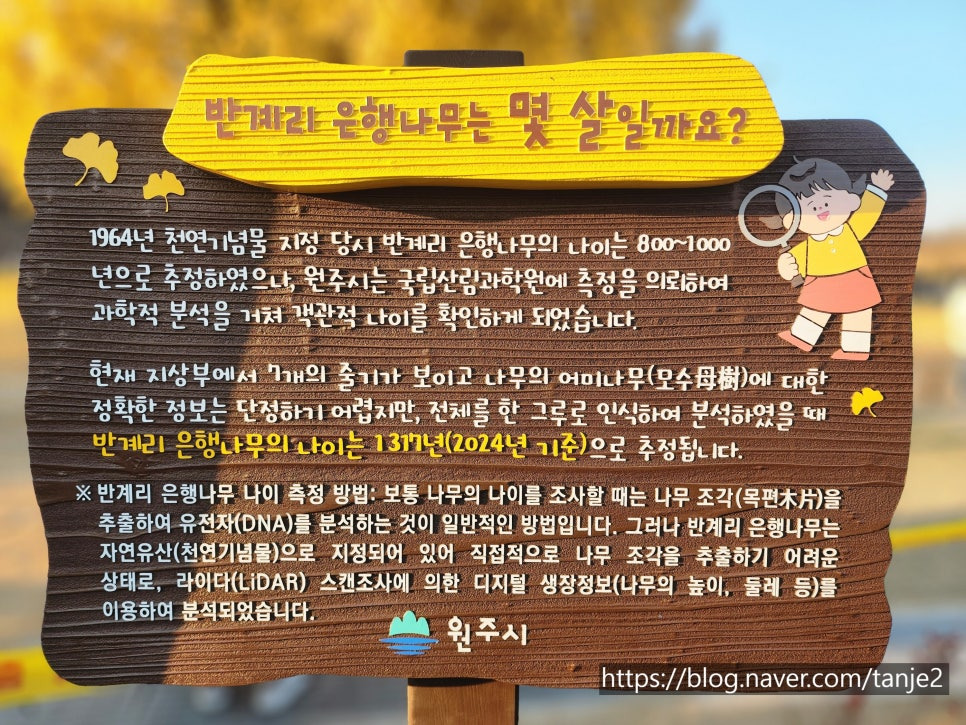 궁금해서 자세히 찾아보니 한국에서 가장 오래된 은행나무는 강원도 원주시 문막읍 반계리 은행나무였습니다.