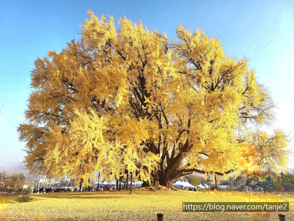 먼 발취에서도 엄청나게 커 보였지만 정말 가까이 다가갈수록 그 자태와 풍모에서 엄청난 압도감이 몰려왔고 그 풍성함 또한 감히 지금까지 봐왔던 그 어떤 은행나무와도 엄청난 차이가 있었습니다.