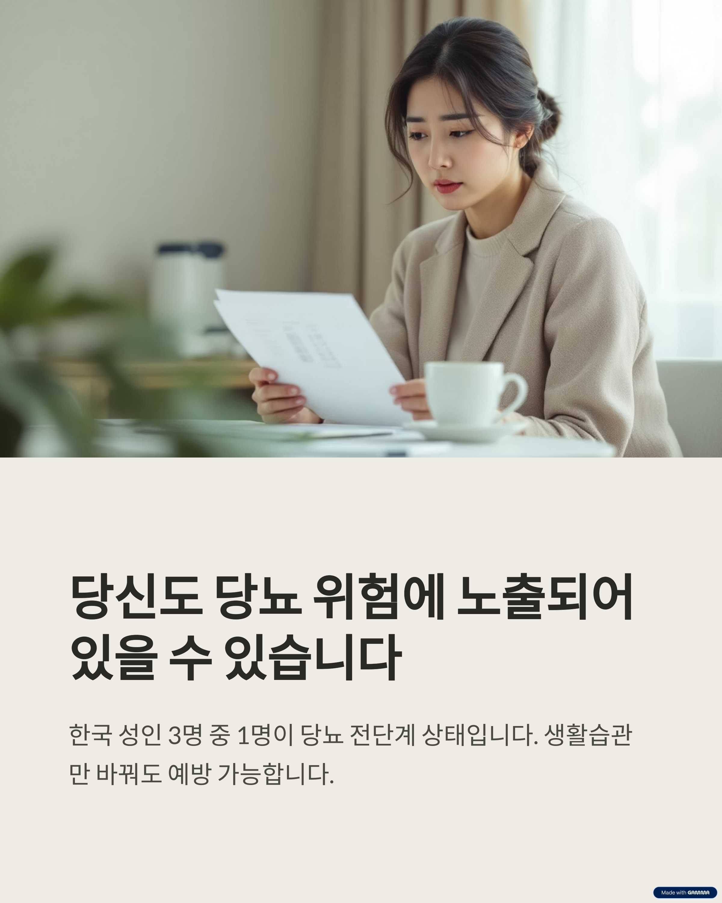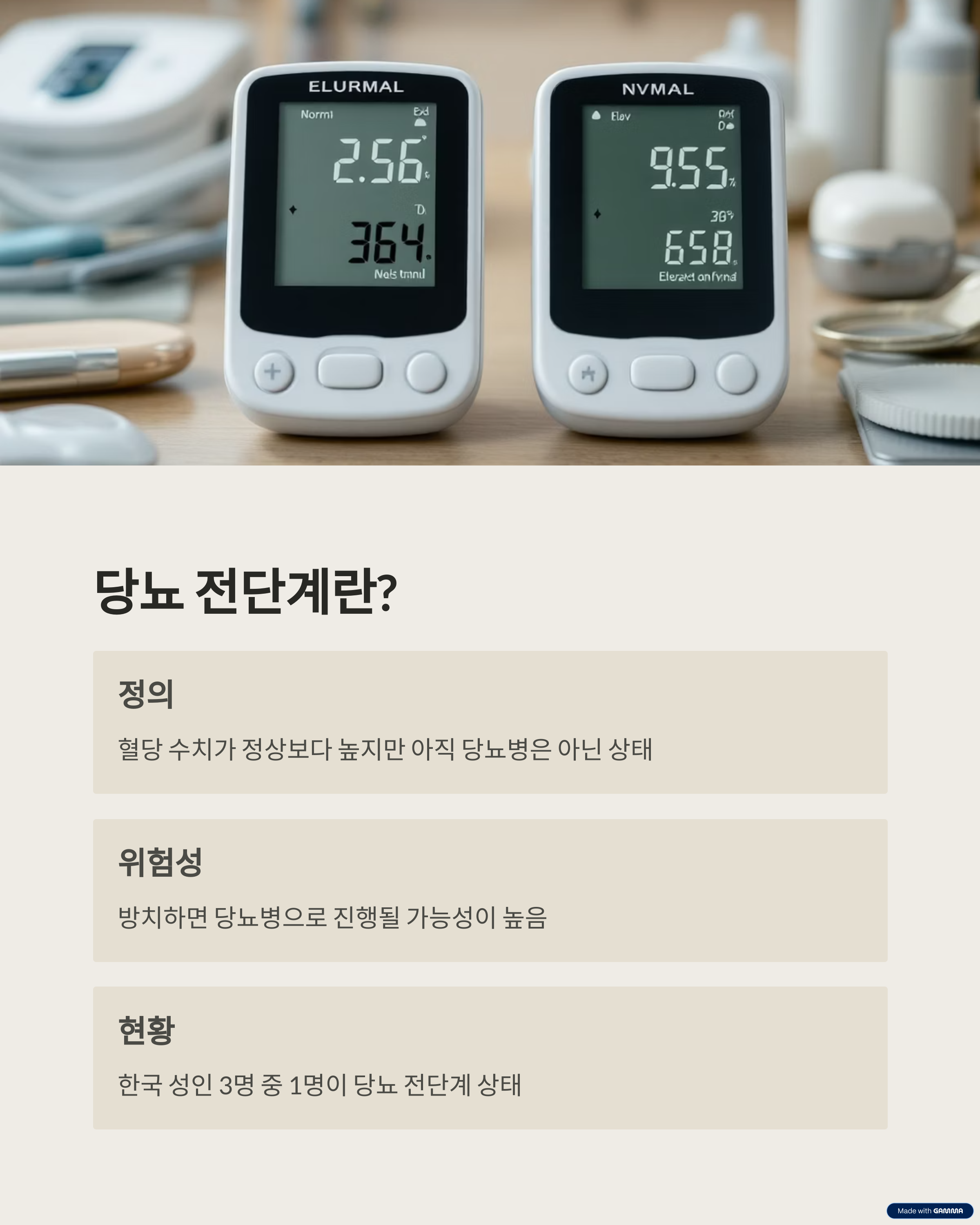 최근 건강검진 결과에서 '당뇨 전단계'라는 말을 자주 듣게 됩니다. 이는 아직 당뇨병은 아니지만 혈당 수치가 정상보다 높아 향후 당뇨로 진행될 가능성이 높은 상태를 말합니다. 놀라운 사실은 한국 성인 3명 중 1명이 이 당뇨 전단계 상태에 있다는 것입니다. 왜 이렇게 많은 사람들이 혈당 문제를 겪고 있는 걸까요?