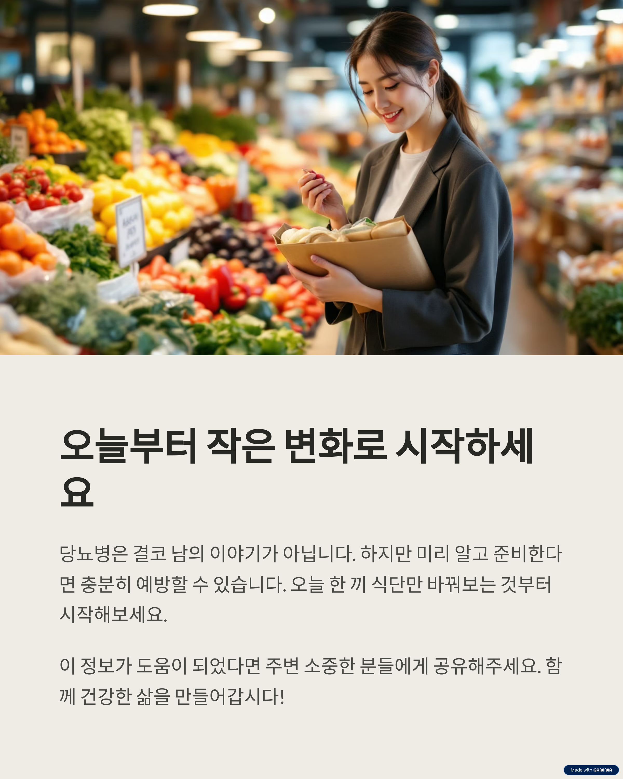 당뇨병과 당뇨 전단계는 결코 남의 이야기가 아닙니다. 하지만 미리 알고 준비한다면 충분히 예방할 수 있습니다. 꾸준한 관심과 실천이 당뇨 없는 건강한 삶을 만들어 줍니다.
