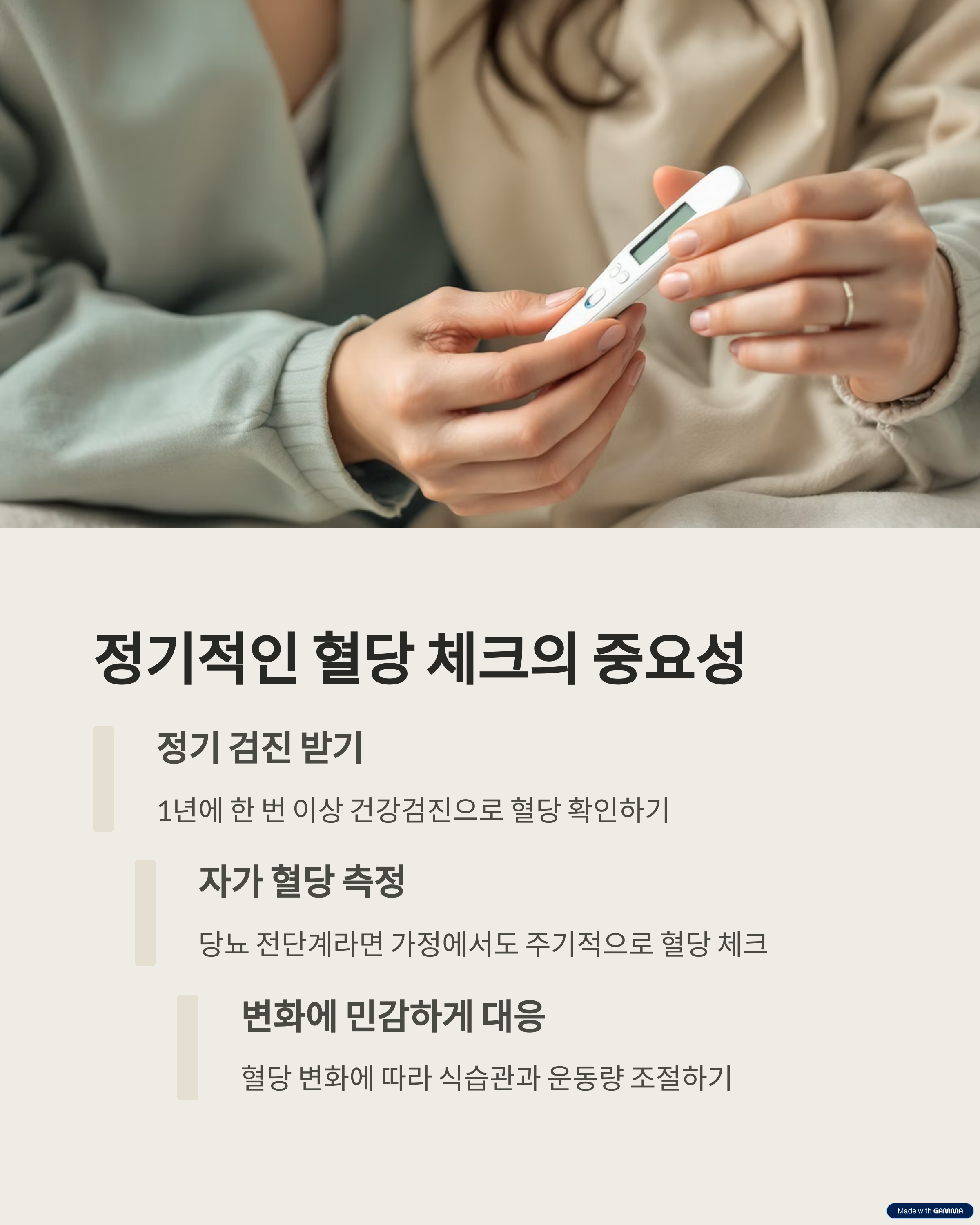 당뇨 전단계일수록 본인의 혈당 수치를 자주 확인하고 변화에 민감해야 합니다. 마지막으로 스트레스 관리와 충분한 수면도 빼놓을 수 없습니다.